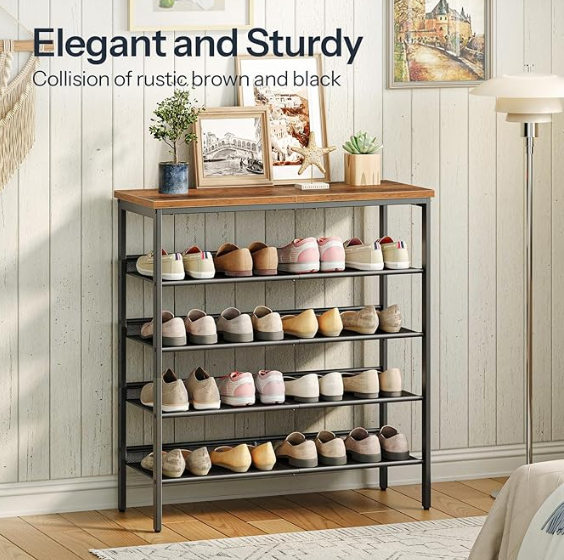 Organized Shoe Storage: This shoe rack restores order to your home with five shelves (including the top shelf) holding 16-20 pairs of shoes(depends on shoe size and type), ensuring a tidy display of your footwear and banishing chaos from corners